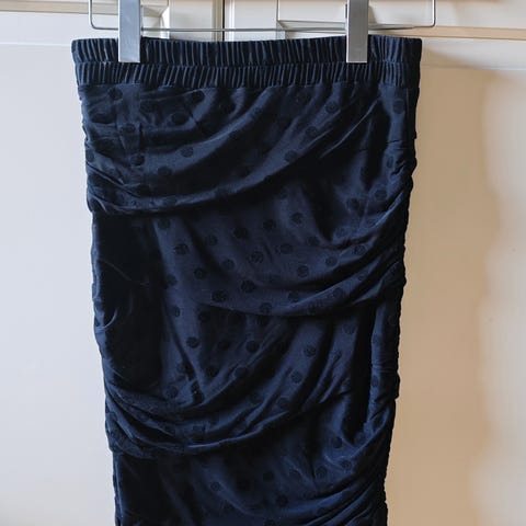 Selger dette fantastiske skjørtet fra Ganni da det er for lite. Sitter veldig fint på og passer til alt fra singlet til blazer! Kun brukt én gang, men jeg har visst tatt av vaskelappen der størrelsen sto, så husker ikke om det er en 34 eller 36. Se derfor mål.