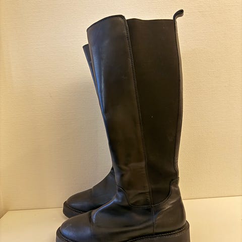 Støvletter i sort skinn fra Ellos. Hæl ca 5.5 cm