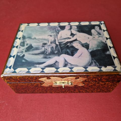 Nydelig syskrin med lokk og hank, smykkeskrin skrin til fine saker