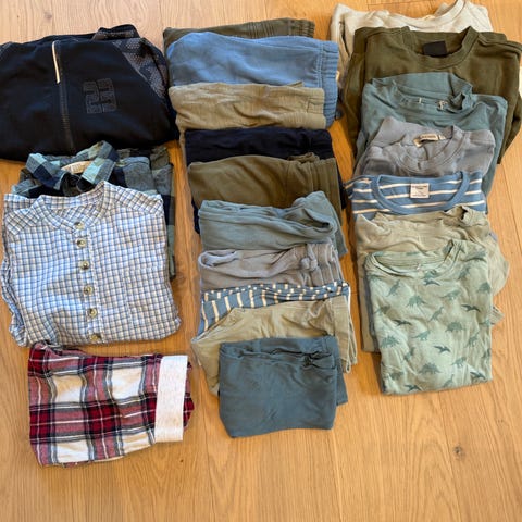 Fin pakke med klær. Zarabuksene har noen hull (se bilder) men kan fint brukes og Polo shortsen har noen flekker. Ellers tipp topp.