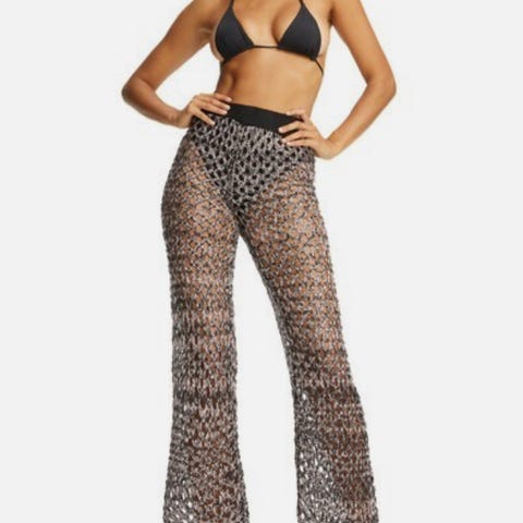 Ny I.AM.GIA Nash hekle/strikkede bukser, wide leg. Sort bånd rundt midje og ankler, naken/rosa og grå/svart bredhullsstrikk.