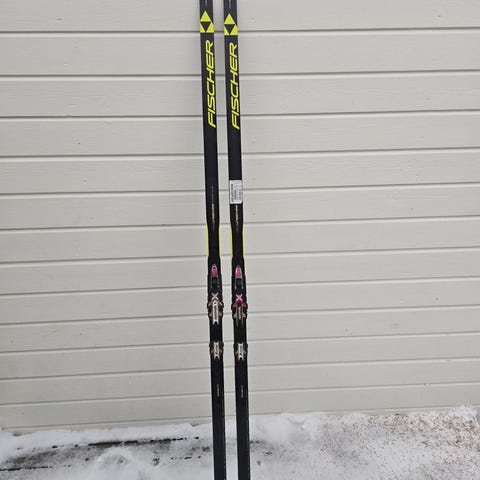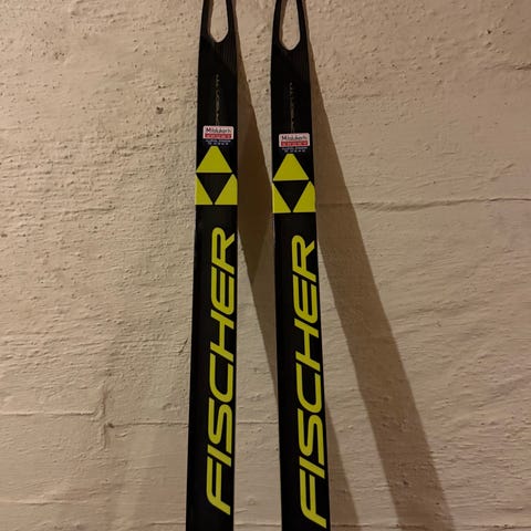 Fint brukte Fischer Speedmax. Den ene skia har et lite sår ved fronten av bindingen. Ellers er sålene i god stand - slipt med K. Skrødal KS 2-1 universal slip.