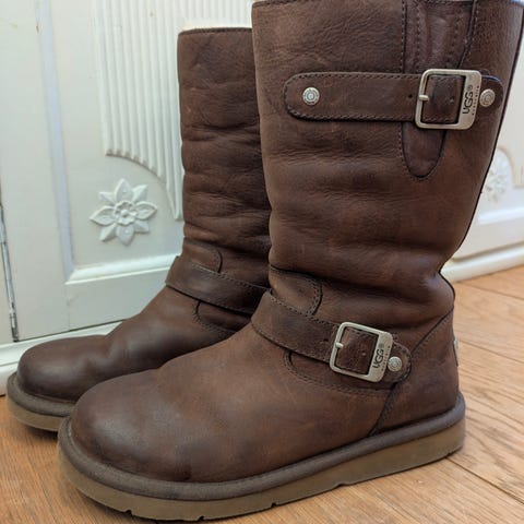 Spenner og merke med original branding. Brukt 1 gang, så ingen slitasje på såle eller innerfôret. Har ligget lagret i eske, ingen fuktskader eller lukt.