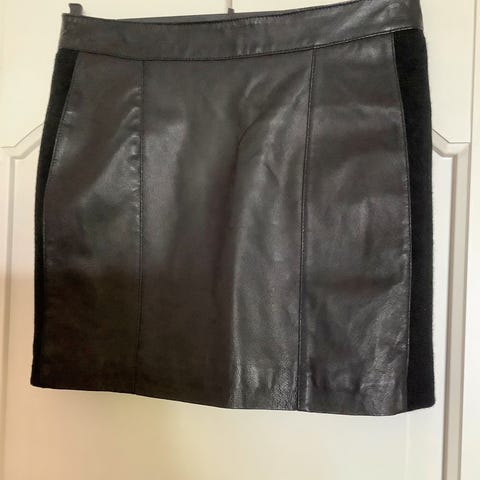 Lekkert skjørt i eksklusiv skinnkvalitet med glidelås på begge sider og hemper til belte i livet. Lukking foran med glidelås og mange fine detaljer.