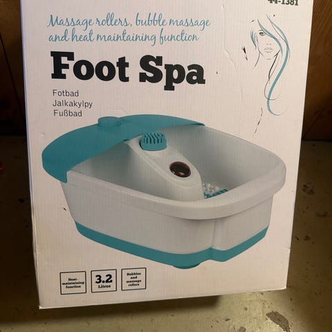Vannmassage til føtter Synlig brukt. har ingen skader. Har tre moduser, og to dyser. Veldig komfortabel og kul. Passer både til barn og voksne.