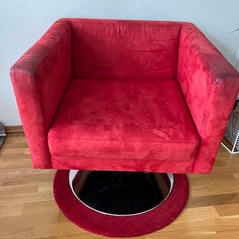 Selger sammenleggbar stol i mykt og godt stoff som ligner fleece/ull. Det følger med en oppbevaringspose som man kan bruke om man skal ta med stolen på reise/evt. til lagring.
