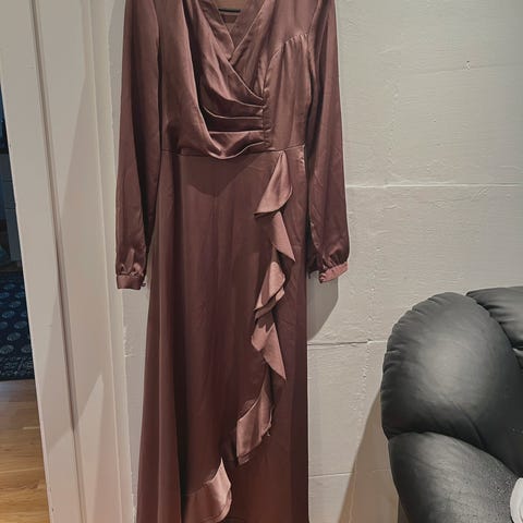 Selger en nydelig rosa satengkjole fra H&M i størrelse 36. Kjolen er midi-lengde med en elegant glans – perfekt til fest, bryllup eller andre spesielle anledninger.