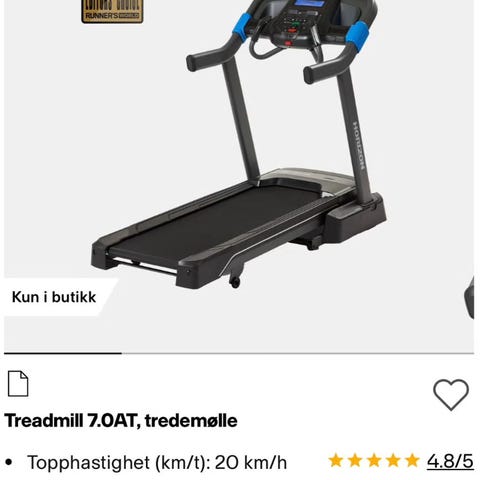 Tredemølle selges grunnet plassmangel. Med hastighet opp til 18 km/h og helning passer den til både jogging og gange.