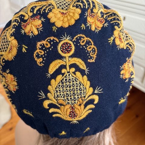 Søkeord: bunad, tilbehør, rød, rødt, Romeriksbunad, cape