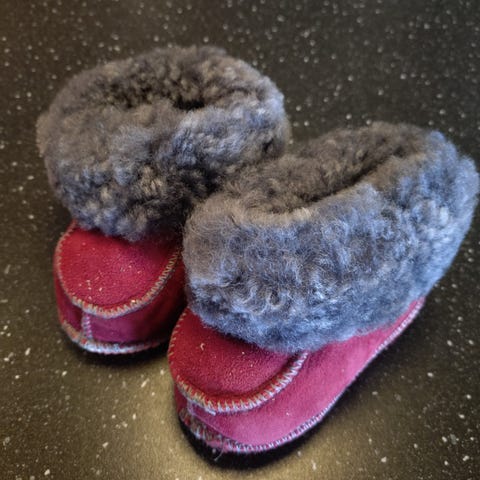 🌸 Gode og varme tøfler i saueskinn som er ullforet i str.20/21. Pent brukt. Ble kun brukt i vogn når jenten vår sov i barnehagen
