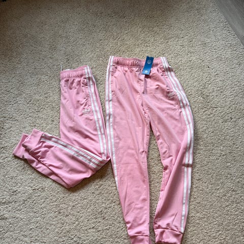 Strøken lys/klar fersken rosa farget Adidas tracksuit bukse 3-4 år