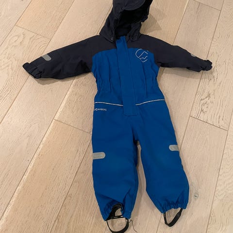 Vindtett og vannavstøtende vårdress, med reflekser, strikk i midjen, avtagbar hetter og fester for strikk i beina. Nyvasket og tidligere impregnert. Hel og fin. Str 2 kan sammenlignes med 92-98 og tas i bruk til og med 3 år, noe avhengig av hvor stort barnet er.