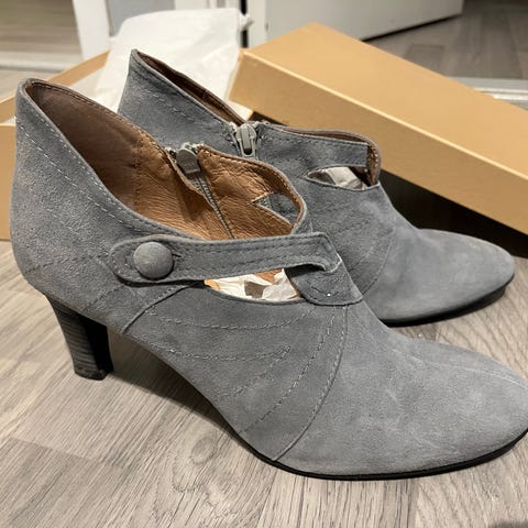 Brukt en gang med såle da de var litt store. Sitter nydelig på foten. Blå semsket.