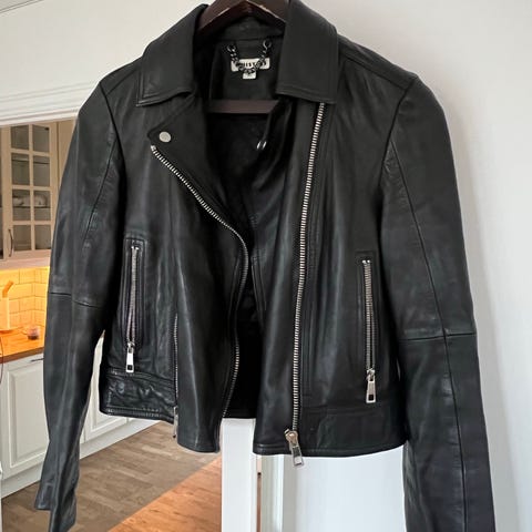 Nesten ubrukt skinnjakke til salgs