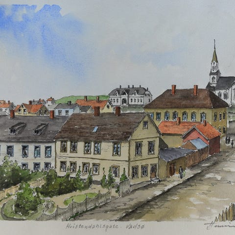 Thor Henning Kristiansen født 1943 har laget utallige håndmalte akvareller av mange byer og tettsteder i Norge. Han var kjent for sin spesielle tegnemåte der det ikke er noen rette streker på bygningene. Thor Henning var designer på Porsgrund Porselænsfabrik i over 40 år.