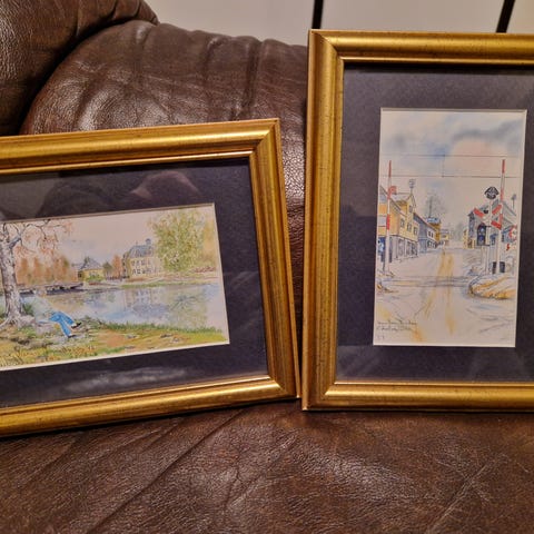 Foto av bildene viser mørkere farger enn opprinnelig. Be meg gjerne om flere foto. Jeg har en nabo som leverer proff innramming. Har avtalt en god pris for dere som kjøper bybilder. Jeg fikser om du vil.