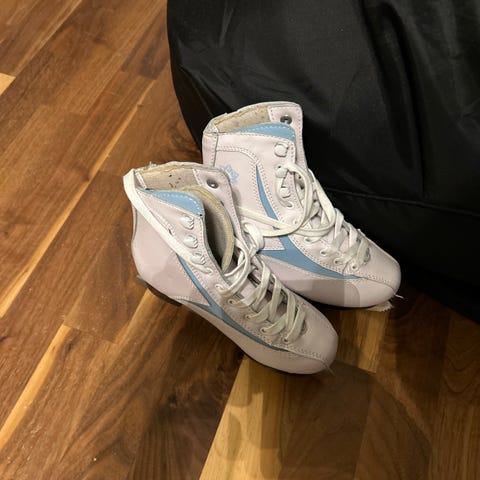 Brune / beige trekk til kunstløpskøyter. De er 20 cm lange liggende flatt (se bilde) og blir 23-24 cm lange når man drar dem ut. Passer i hvert fall på en skøyte Riedell i str 4 ( ca str 35) og lande opp til en skøyte i str 36-37