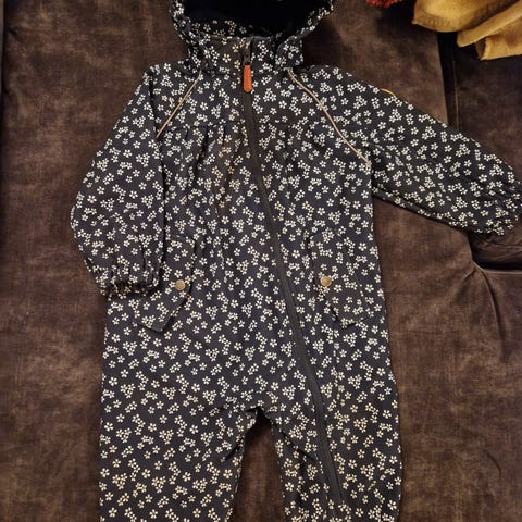 Nydelig softshell Kuling dress i 86. Blå med lyseblå blomster. Lommer i sidene, strikker under føttene, avtakbar hette. Som ny. Den er nesten ubrukt pga barnet vokste så fort. Røyk og dyrefri heim.