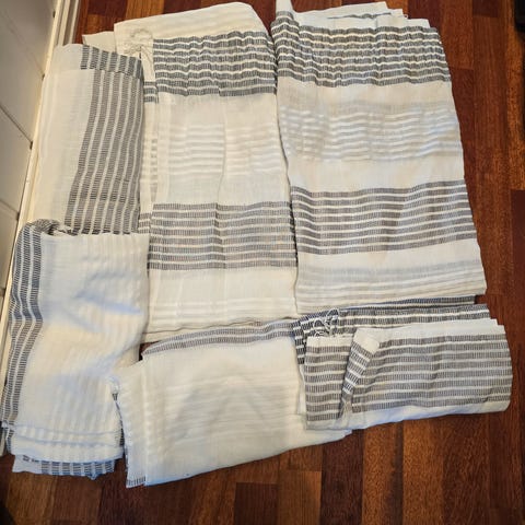 7 lengder, derav to på 140x150 og fem på 140x220. Usikker på merke og type stoff