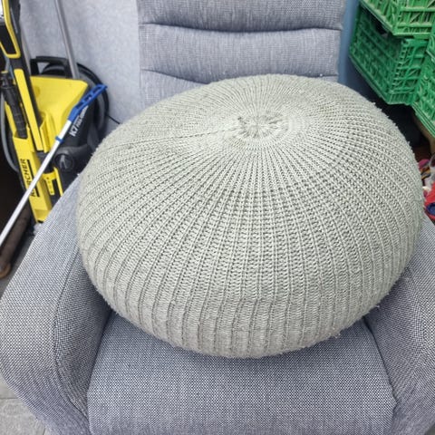 Heklet/strikket solid kurv i grå ca 40x45 kan brukes til puter, vedkubber, strikketøy med mere! Selges for kun 350,-(nypris 2400,-) kan sendes men er tung så koster 135 i porto med posten