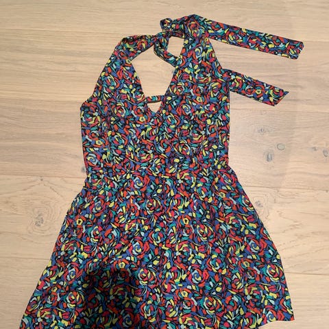 Kjempefin, fargerik jumpsuit selges, da den dessverre er for liten for meg. Den har knyting oppe, slik at man kan justere den lett. Den har lommer på begge sider, og tøy innvendig på bryst/rygg. Merke: BCBG