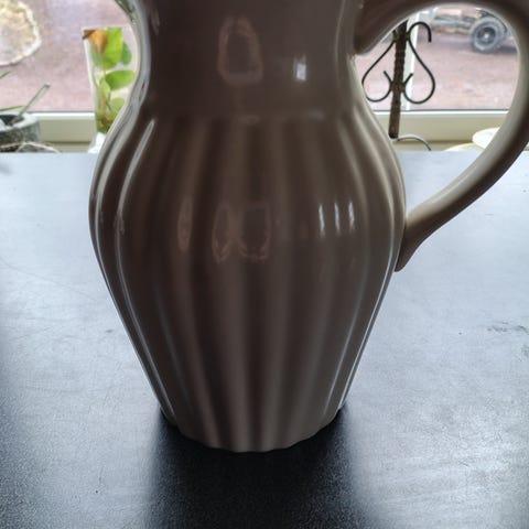 Stilig, tidløs mugge i nøytral farge fra Granit selges.