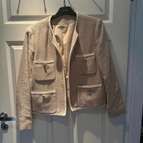 Elegant blazer for vår og sommer. Kan brukes på jobb eller som en lett sommerjakke. Perfekt krave for layering. Pent brukt.
