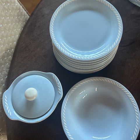 Kopp og tefat selges for 100 kr pr sett, eller hele pakkes samlet for 1000 kr.
