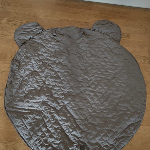 Kjøpt på søstrene grene. Lett å rulle sammen og ha med rundt. Ca 90 cm diameter. Kan vaskes på 40 grader i maskin.