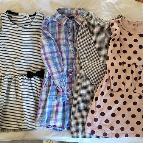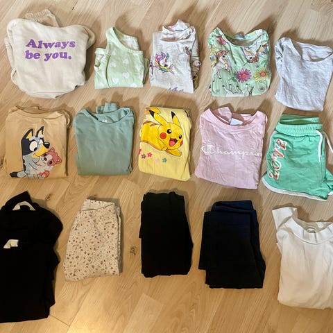 Det meste i størrelse 110/116, noe litt større men som har blitt brukt samtidig