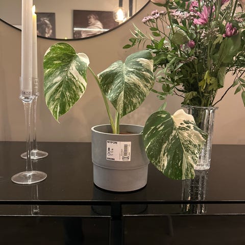 Nr. 1 får et nytt blad. Ca 25cm høy og har masse hvitt på både stilk og blad.