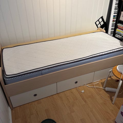 Ikea hemnes seng med madrasse og skuffer. Er lite pent brukt. Har blitt brukt som seng på gjesterom.