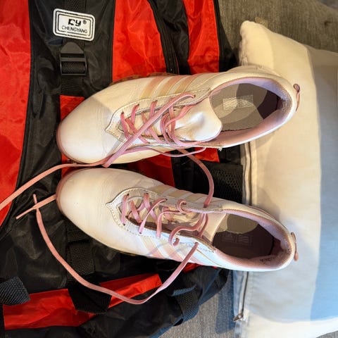 Helt nye og UBRUKTE golfsko til dame selges! Rosa og hvite! Kjempe fine!