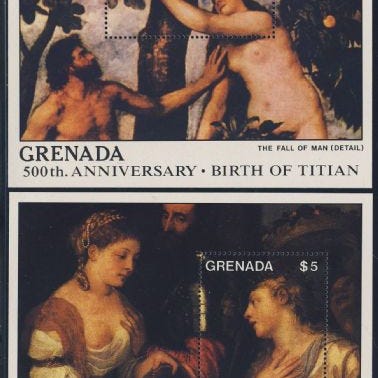 90% rabatt: Guyana 1988 Maleri av Tizian, Michel blokk 26 (Postfrisk).