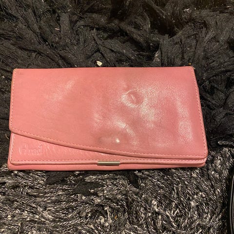 Portomoné fra Noa noa. Den måler 13x14 cm. 3 rom inni. Et med glidelås og to uten. Selges for 50kr.