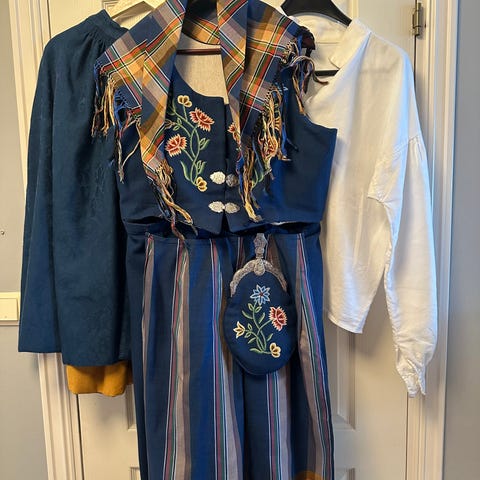 Bunad - 43.850 som da innkluderer stakk, vest, veske, forkle og sjal.