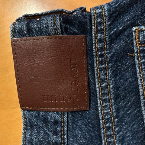 Selger en klassisk jeans fra Never Denim (Bik Bok), modell “JP Low Straight 570”. Lavt liv, rette ben og tidløs passform. Størrelse 24/32 – passer ungdom eller petite voksen.