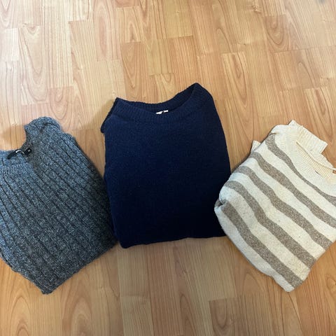 To pent brukte strikkagensere selges samlet.