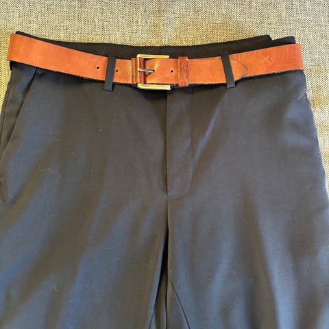Mørkeblå slim fit dressbukse ullblend str.27 (S) og extra slim fit hvit skorte str.XS (35-36).