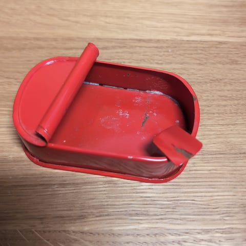 Jeg selger en super-retro tannglass-/tannbørsteholder i solid hardplast. Oransje og nydelig. Den skal henges opp på vegg. Fransk kvalitet - vintage.