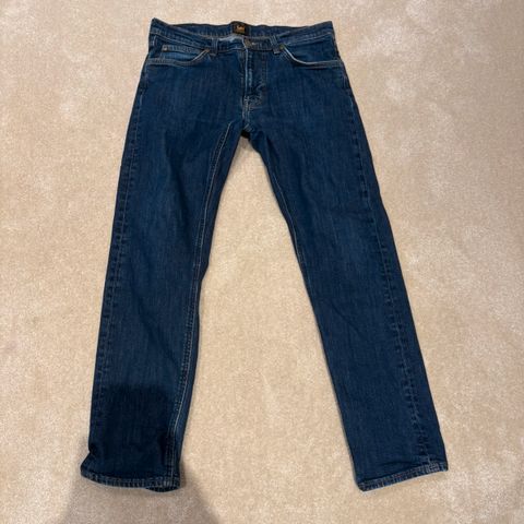 Pent brukt Lee Oscar jeans i mørk grå selges rimelig.