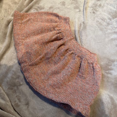 Strikket skjørt strl 1 år. Strikket i garnet lille lerke. Mønster: «enkeltskjørt». Helt nytt.
