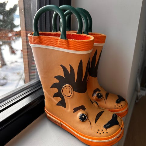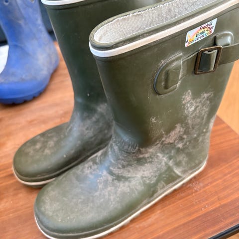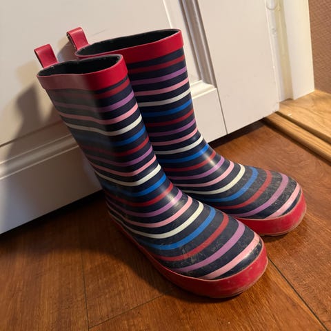 Selger veldig pent brukt fine gule gummistøvler med tiger motivet. Str. 32.