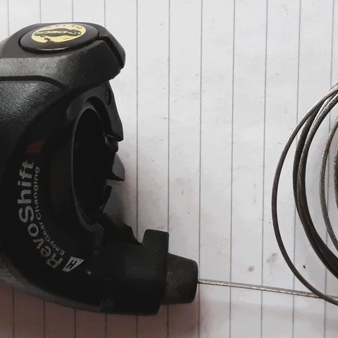 Selger en Shimano Revoshift SL-RS35 venstre girspak for 3-delt fremgir. Den er brukt og har synlige bruksspor, men fungerer som den skal. Dreiespak-design som er enkel å bruke, spesielt for bysykler og hybridsykler.