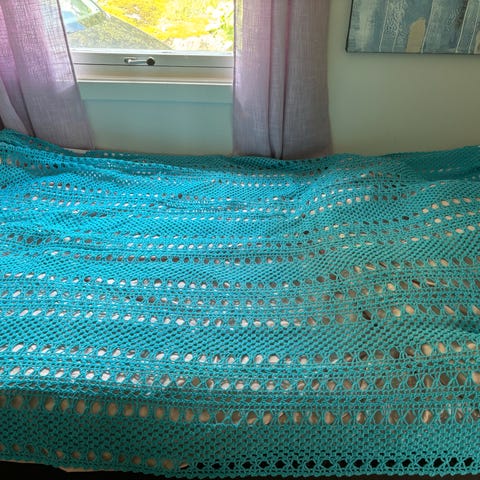 Pent brukt retro sengeteppe til dobbelt seng. Ønsker bud. Sender mot forskudd og porto