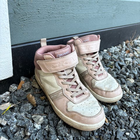 Skoene var med på et kunstprosjekt, ser nesten ut som et selv, gis bort til noen som ikke må ha perfekt utseende da de har blitt for små.