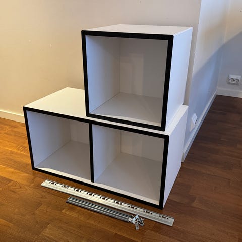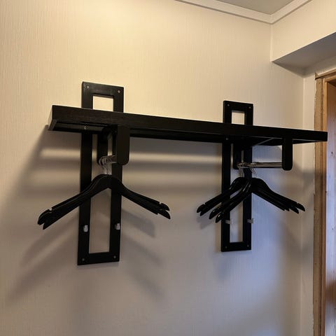 Hylle med knagger og stang til kleshengere