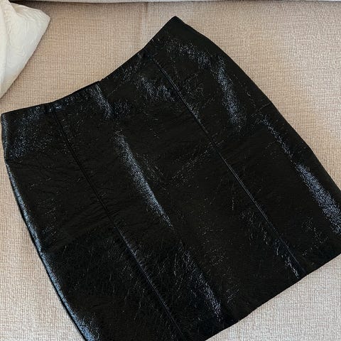 Svart skjørt i fake skinn, str. 38. Kun brukt ett par ganger.