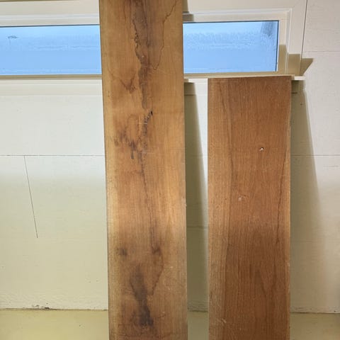 Bookmatch kåte/risknute/rikule av snekkertørr bjørk. ~23 cm. bred og 45 cm. lang. Pent mønster.