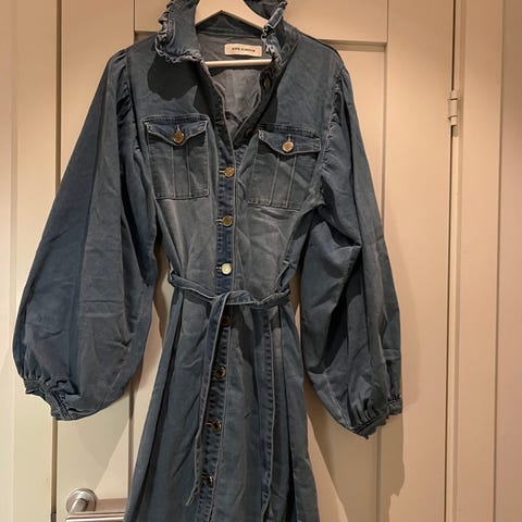 Mørk denimkjole med puffermer og knyting fra HM. Brukt en gang. Mykt stoff.